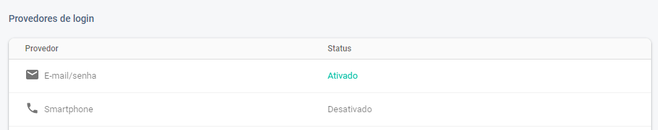 É importante ressaltar que iremos explorar a autenticação por meio de e-mail e senha, portanto, é necessário configurar o console do projeto do Firebase. Para isso você pode acessar o menu Authentication > Sign-in method para que permita esse tipo de autenticação: